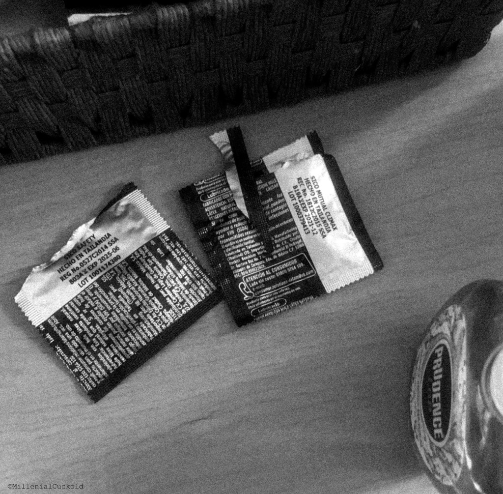 She told me everything. They had started kissing in the living room, him grabbing her ass hard, spanking her while sucking her tits. Then they went upstairs. He undressed, pinned her to the bed, and shoved his cock down her throat. She felt it sliding deeper and deeper until he was face-fucking her, holding her down, making her gag. She thought he was going to cum in her mouth right there, but he pulled back, put on a condom, and mounted her. She told me how amazing it felt to have a different cock inside her, to have a different man fucking her, feeling his muscular arms, his big masculine body on top of her. He lifted her legs onto his shoulders, fucking her hard. Then stood her up and bent her over the bed, holding her wrists tight so she couldn’t move while he pounded her harder and deeper. His cock was bigger than mine, and she wasn’t used to being fucked that rough and they switched positions. He then had her lie face down, lifted her hips, and slid back inside her. That position drove him crazy—she knew how good her ass looked. He spanked her hard, squeezing her cheeks while she moved back against him. She knew he was close, and then he pinned her tight, told her not to stop moving until he finally exploded inside the condom.